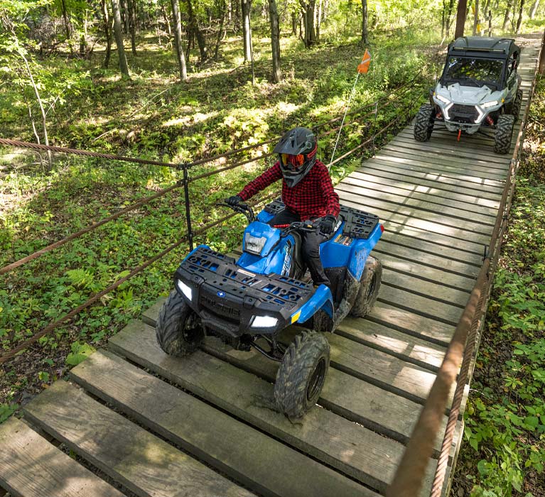 A youth ATV perfect for introducing young riders to trail riding. Engineered for safety, control and fun. Ages 10+ with adult supervision.